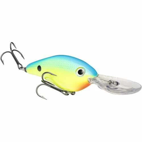 Bass anglers on the hunt for monster bass should arm themselves with big baits. The Strike Kingยฎ Pro Modelยฎ 8XDย Deep Diving Crankbaits fit the big fish/big bait equation perfectly, and their free-floating rattle chambers create big sound as well. On 14-lb. fluorocarbon line, the 8XD can hit 20 feet on the retrieve,ย allowing you to present to fish you could probably never reach with a crankbait before. Yet surprisingly, these quick-diving baits cast and pull rather easily, considering their size. Phil Marks, the lure designer, says that in addition to the size, depth capability, and proven swim, the Pro Model 8XDย emits varying sound frequencies on the retrieve, which heightens their appeal to big bass in the depths. When the fish are hunkered down deep, these big cranks may be your only chance at triggering those big strikes. Superb lifelike finishes.