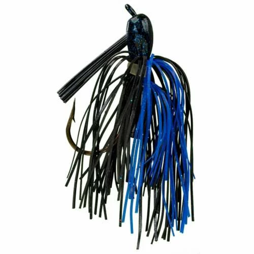 The Pro-Model Jig has a unique head and rattle design. Both enhance performance in heavy cover. The wide rattle has one big open chamber that enables the rattle to work even when the jig moves to the side. It is positioned to the front of the hook shank, higher off of it and has a barb, all of which make it easier to rig and to hold onto soft plastic and ElaZtechโข soft bait trailers. A larger, more premium Mustadยฎ Ultra Point Hook is used. Premium camo-flash skirts enhance the colors. The Pro-Modelยฎ Jig is truly a top-of-the line jig.